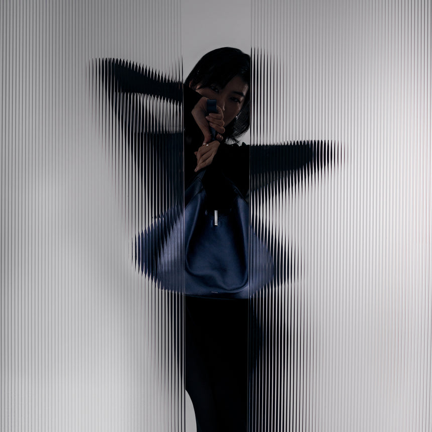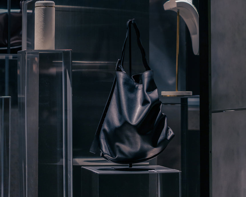 Our latest collections explore the dialogue between structure and flexibility, transforming leather through innovative construction. Signature designs feature expandable forms, sculptural silhouettes, and versatile functionality for contemporary lifestyles.